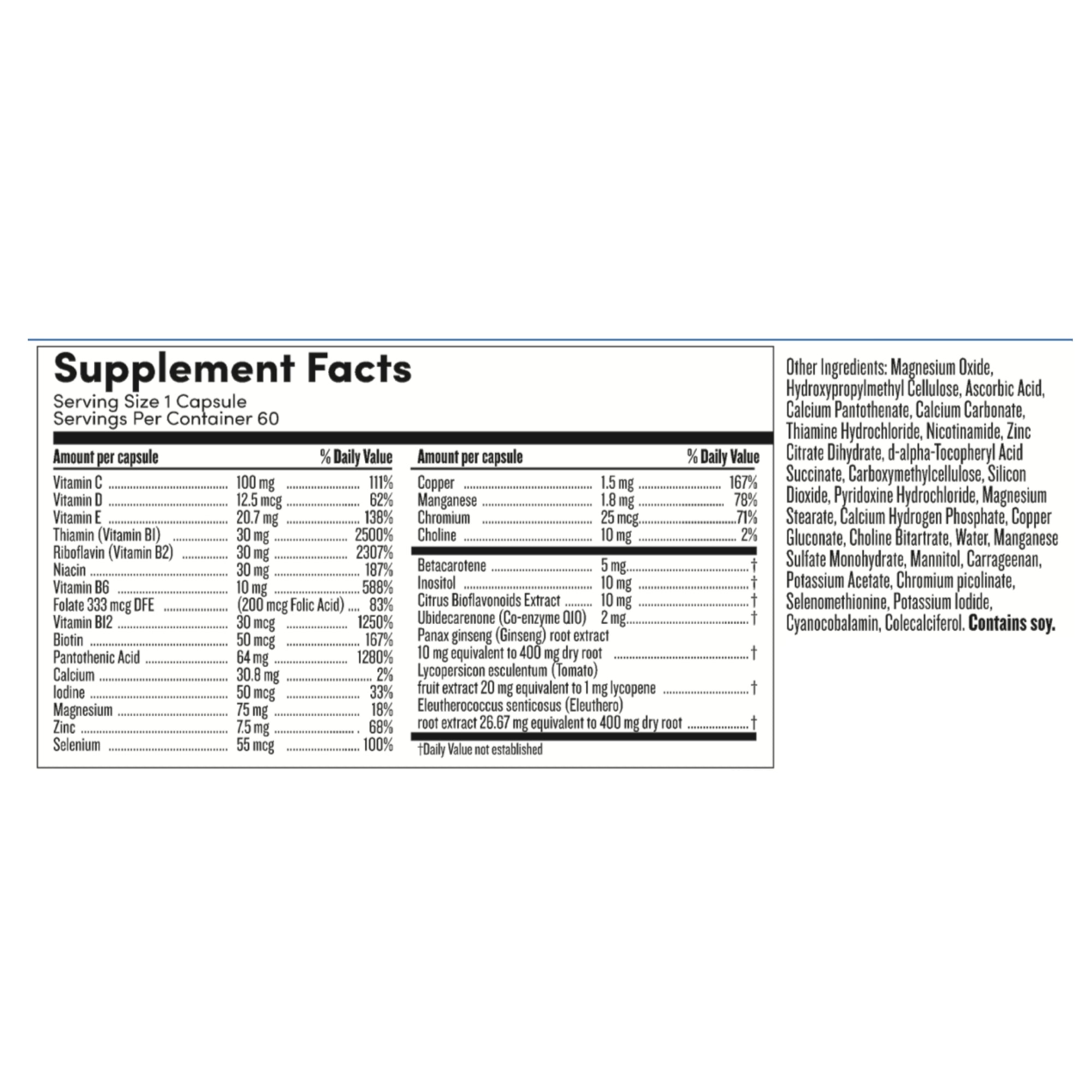 Me Today single dose, Men’s Daily Multivitamins contain 26 vitamins, minerals & herbs including vitamin B6 and B12 in an easy to swallow, vegetarian capsule to support general health & wellbeing by contributing to normal function of the immune system.* Formulated for your busy lifestyle with a blend of antioxidants from lycopene, eleuthero and ginseng. Highly absorbable formulation. Each jar contains 60 capsules which is approx 2 months supply. Recommended dose is 1 capsule/day.